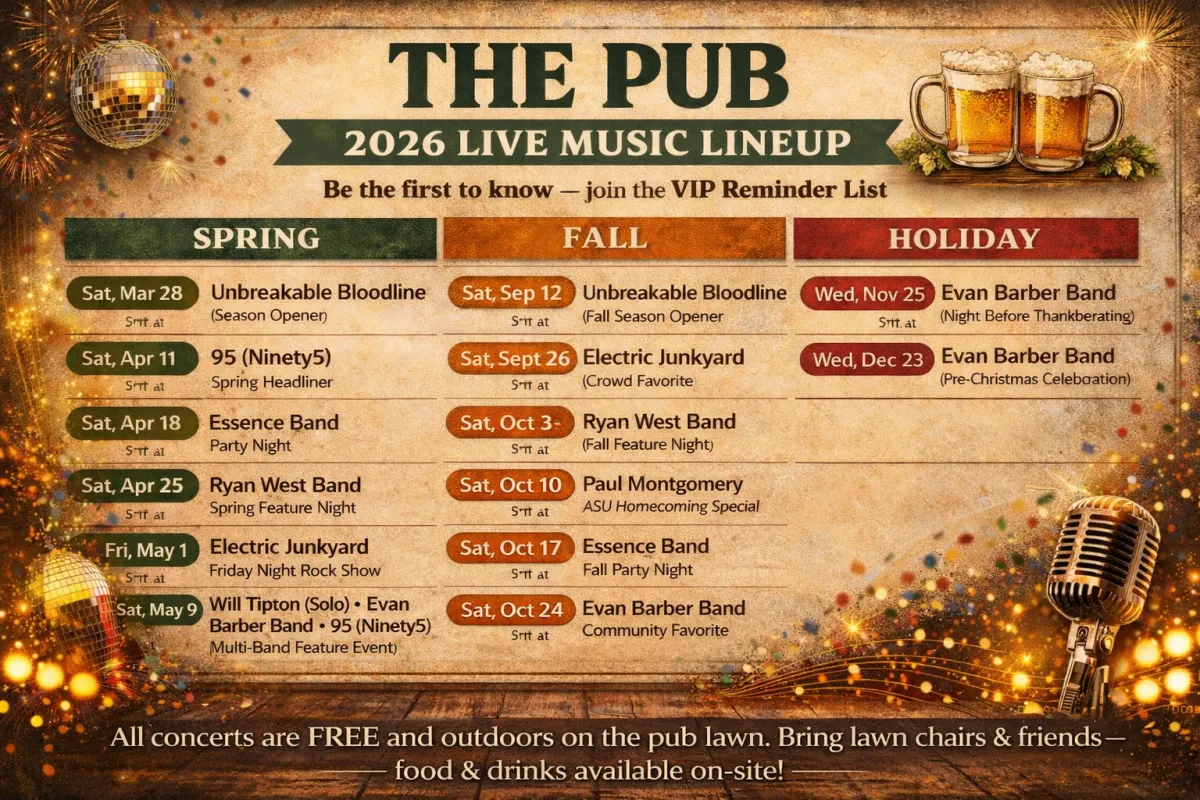Be the first to hear about live music, themed nights, and exclusive offers.